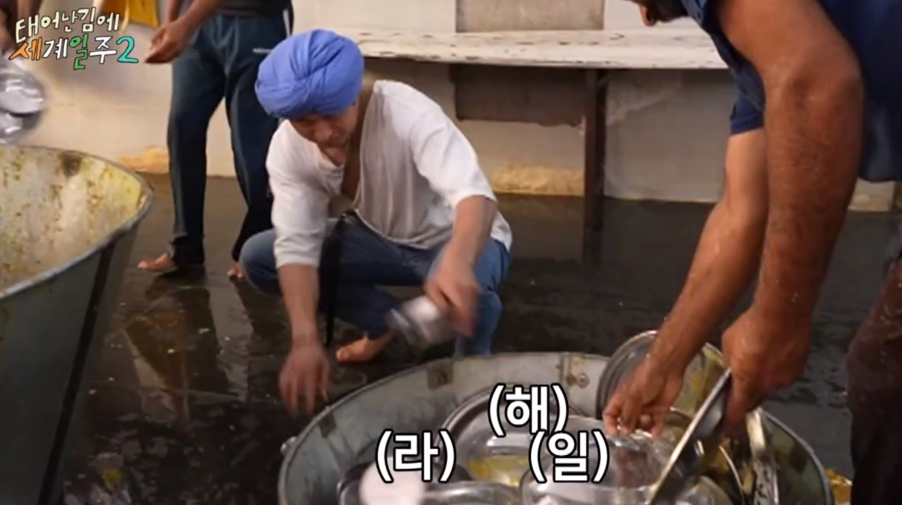 공짜밥도 먹고 설겆이 자원봉사 하는 모습도 나왔습니다.