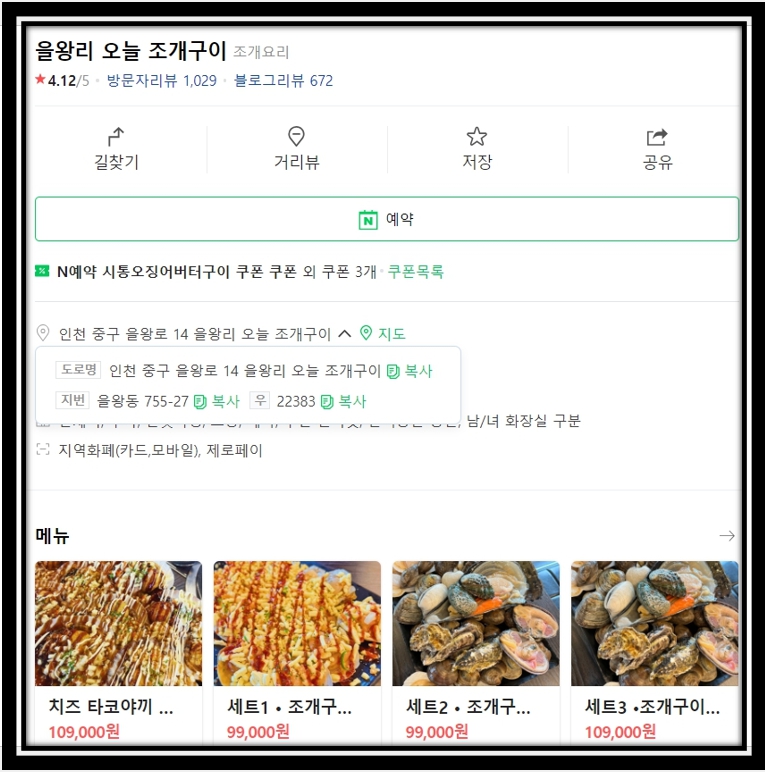 조개구이집 식당 이름 및 위치는