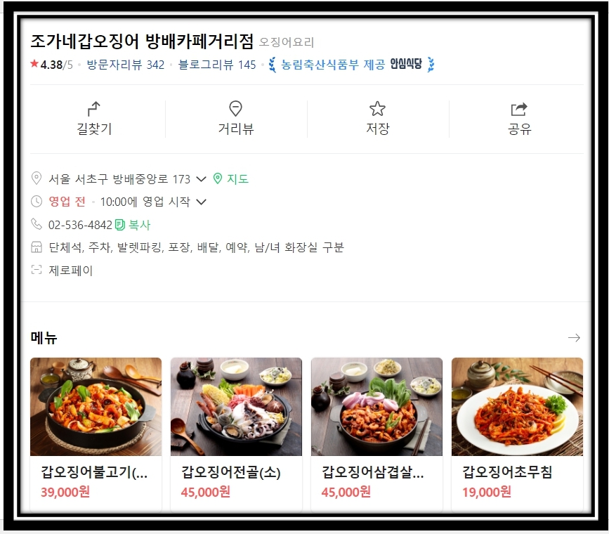 조가네갑오징어 방배카페거리점입니다.