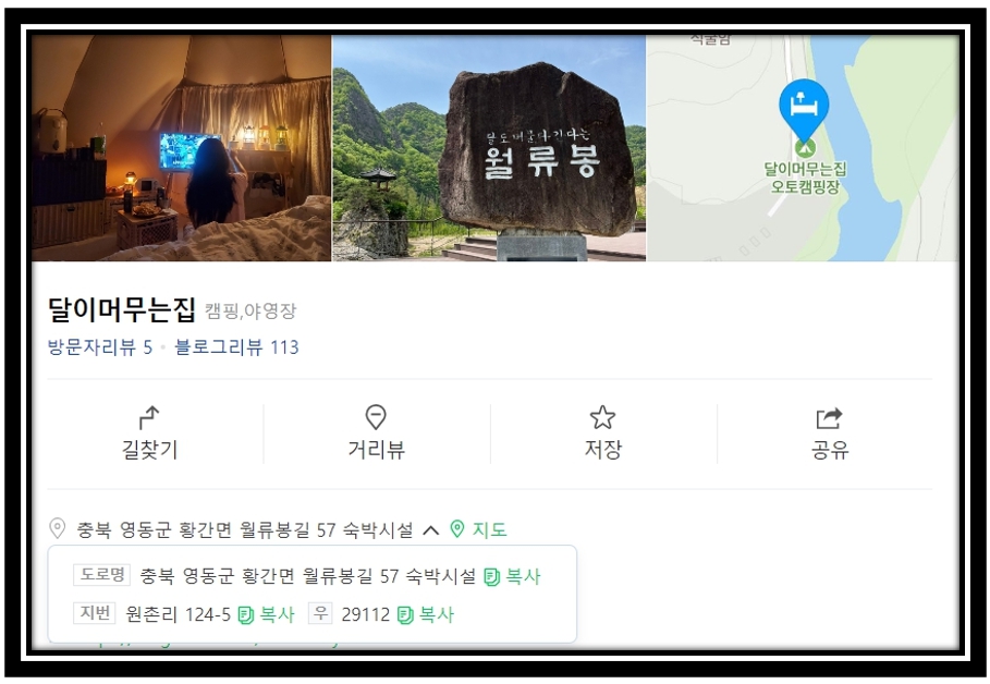 충북 영동 월류봉 캠핑장 이름 및 위치는