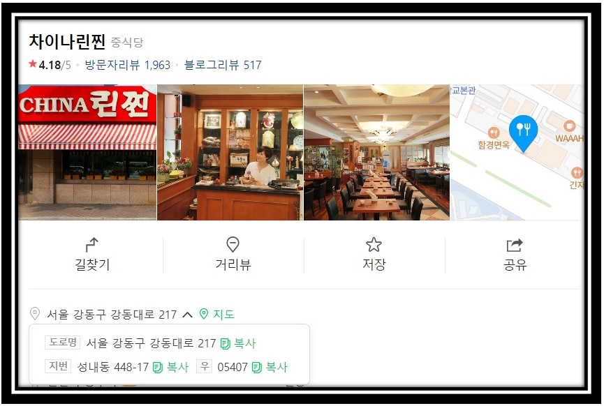 중식당 차이나 레스토랑 이름 및 위치는