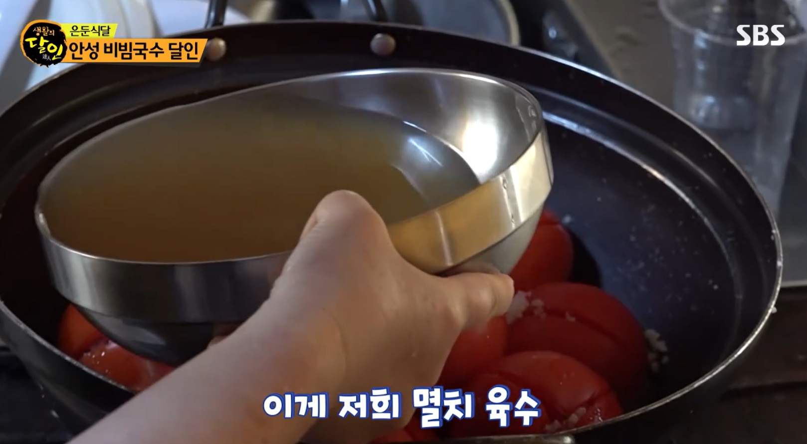 멸치육수와 토마토를 이용해 만드는