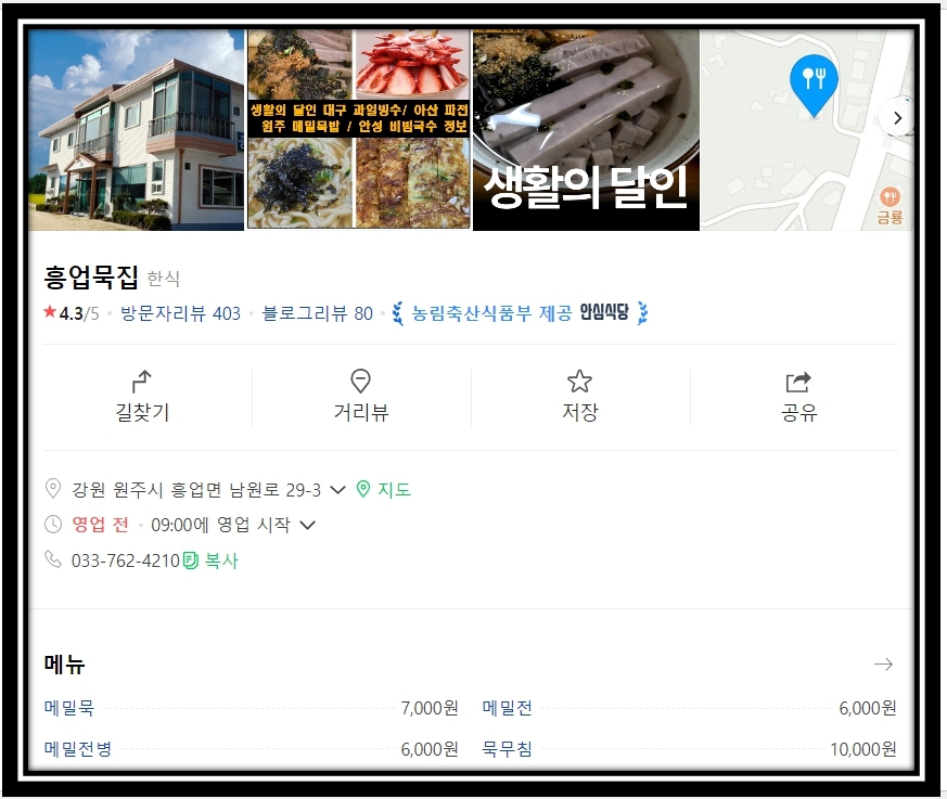 원주의 묵밥집 식당