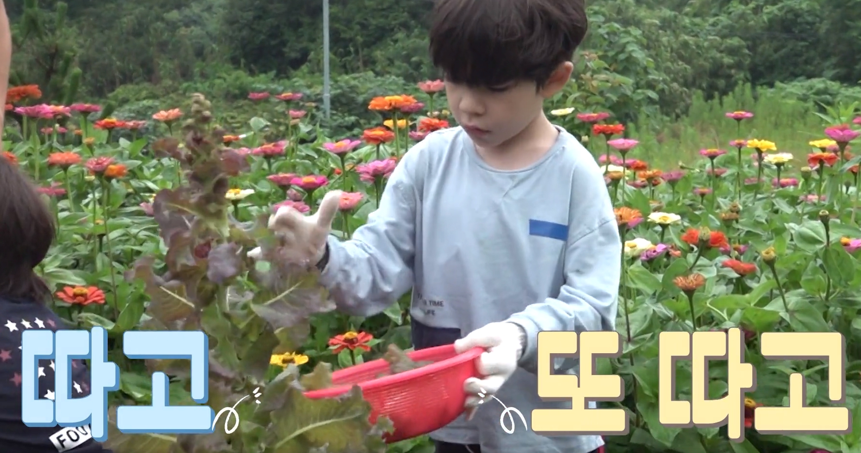 쌈재료들 밭에서 열심히 따고