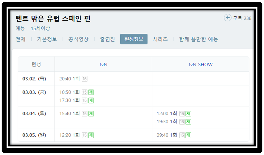 텐트 밖은 유럽 스페인 편으로 방송됩니다.