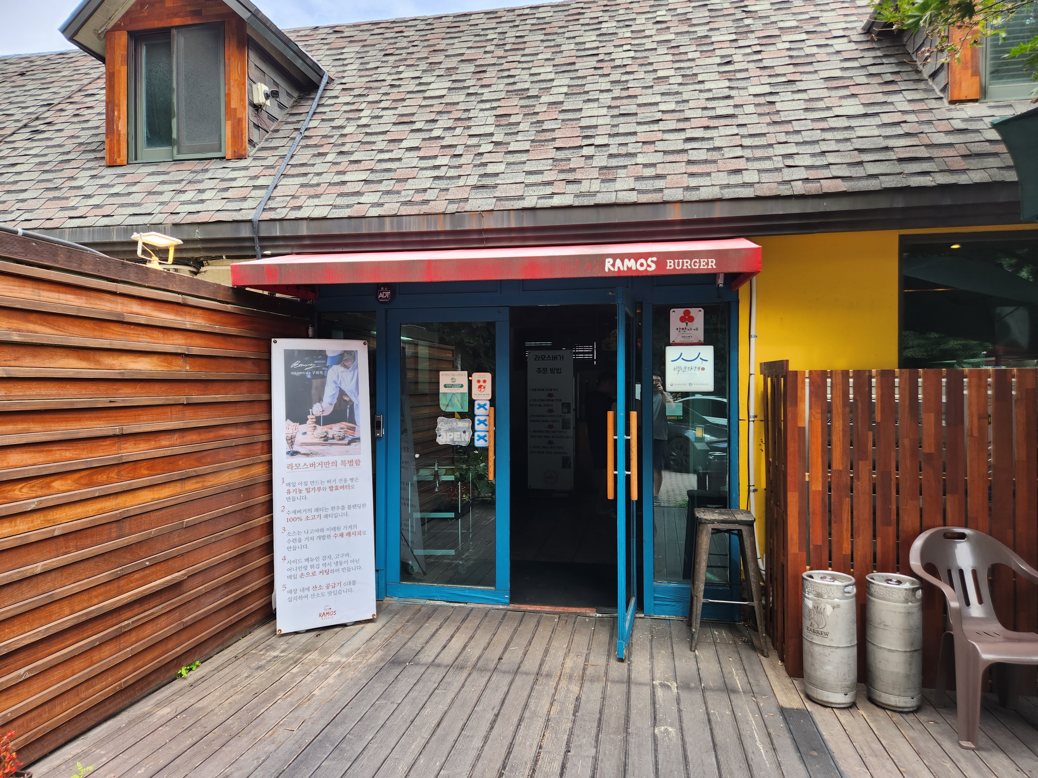 건물앞에 주차장 있어 주차하고 라모스버거 안으로 들어갔는데요. 백 년 가게로 선정된 곳이기도 하고요.