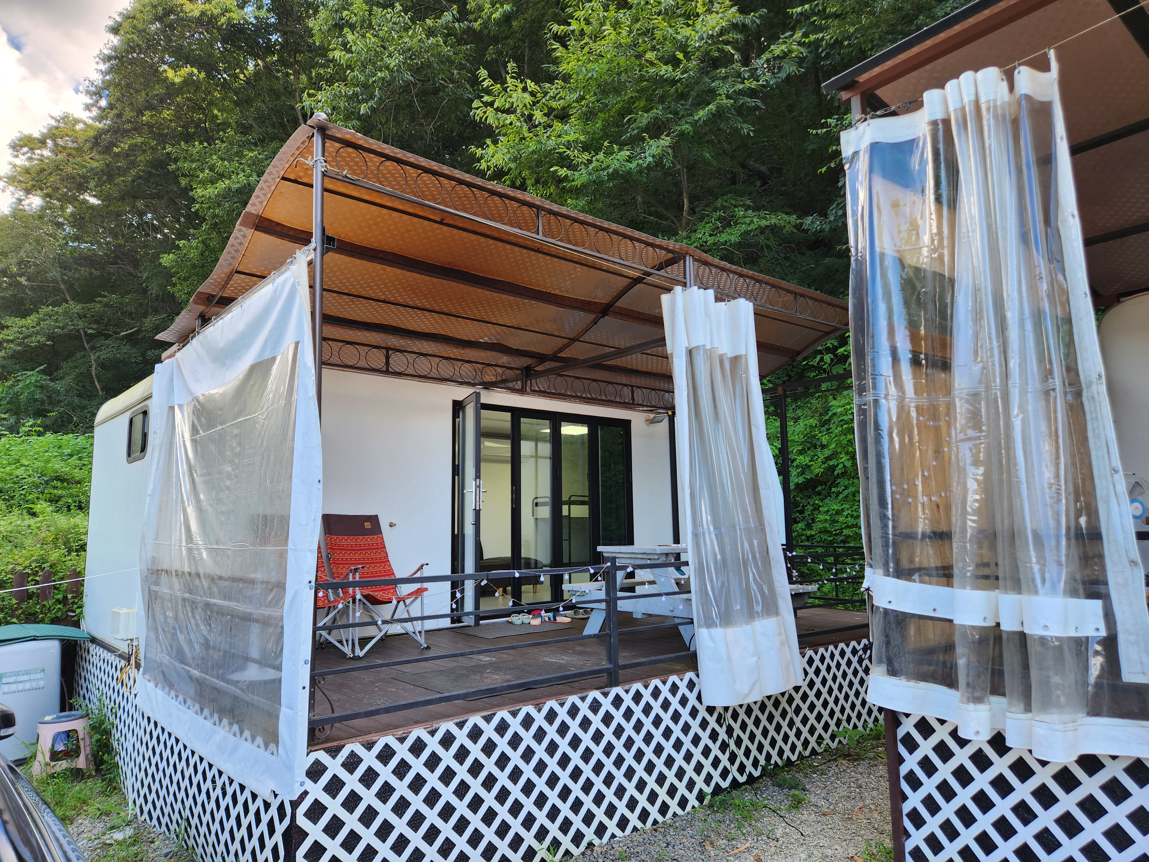 이곳 사진 찍는거 까먹었는데 이곳 선택한 이유가 카라반 낭만도 있지만 딸아이 이번 여름에 발을 다쳐 깁스해서 물놀이 못 했는데 이곳 야외에 작은 실외스파 있어 간단하게 물놀이할 수 있어 이곳 선택했고요.