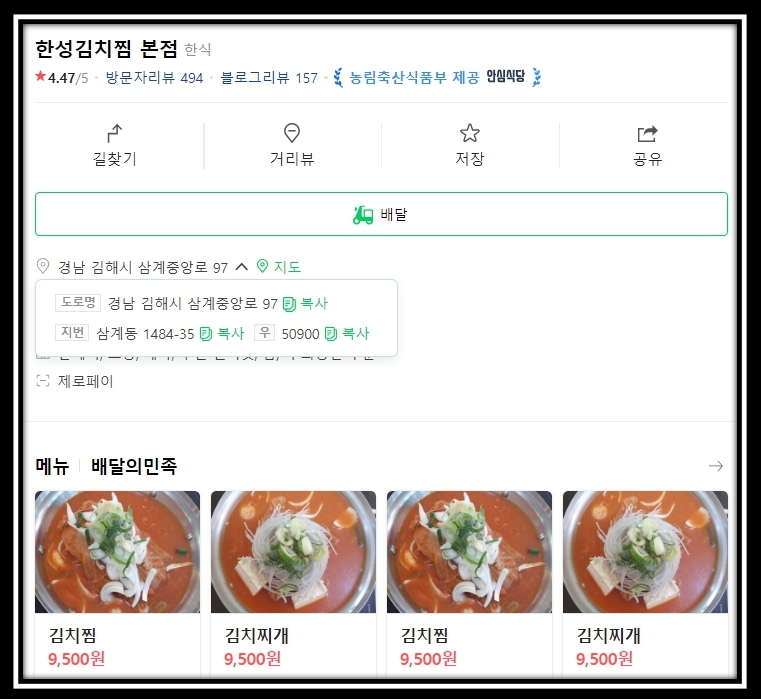 김해시 삼계동에 위치한 식당