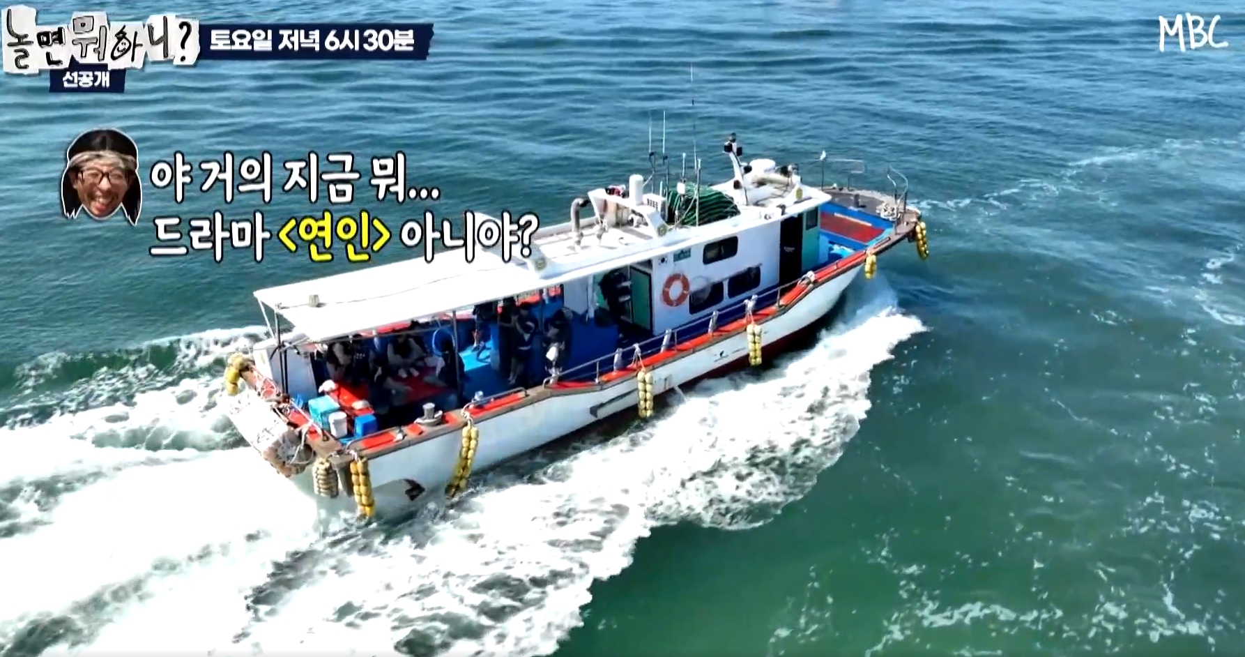 드라마 연인 패러디지만 배를 타고 가는 모습