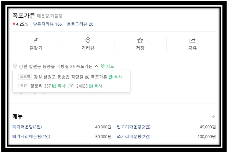 민물매운탕 식당 매운탕집 이름 및 위치는