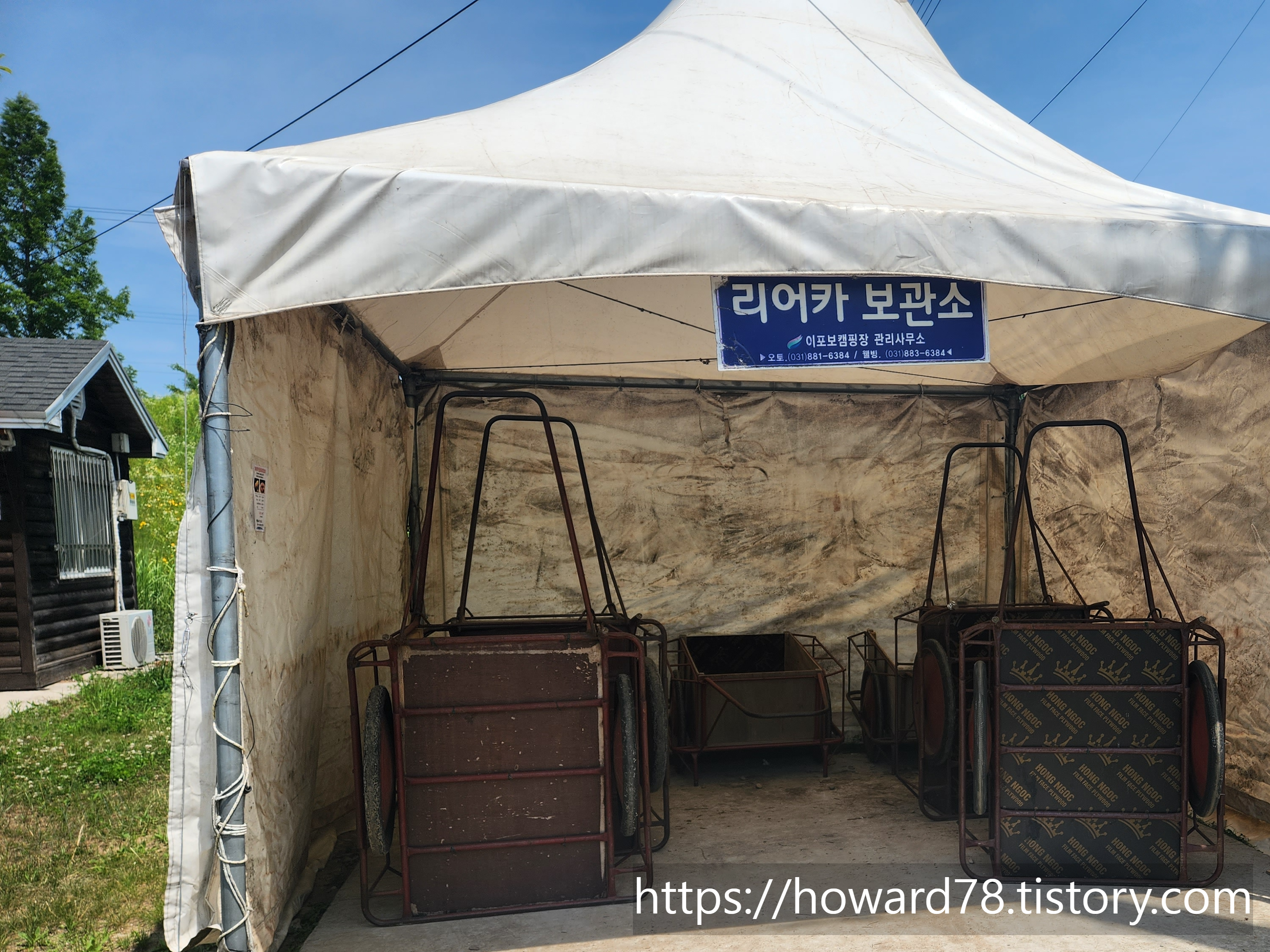 관리사무실 옆 리어카 보관소에서 짐싫어 옮겨야 되고요.