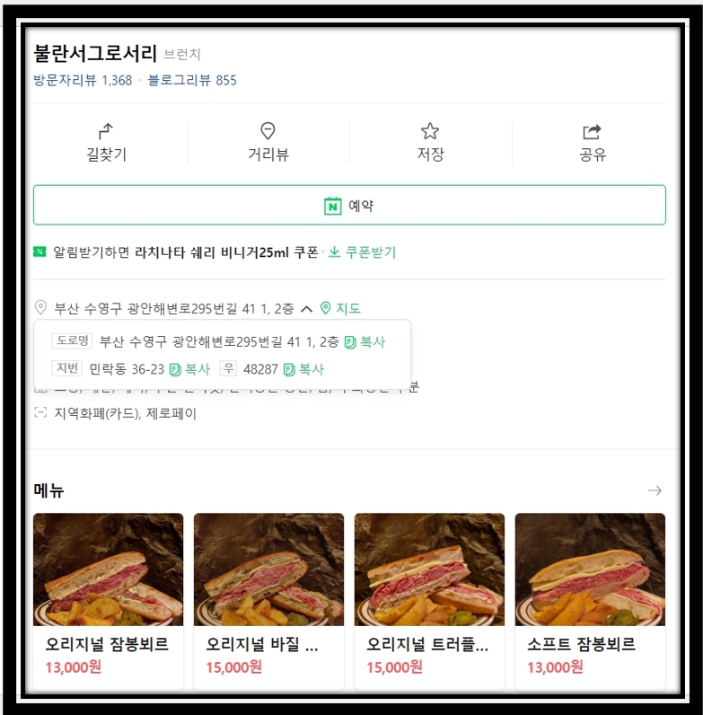 프랑스 식당 이름 및 위치는