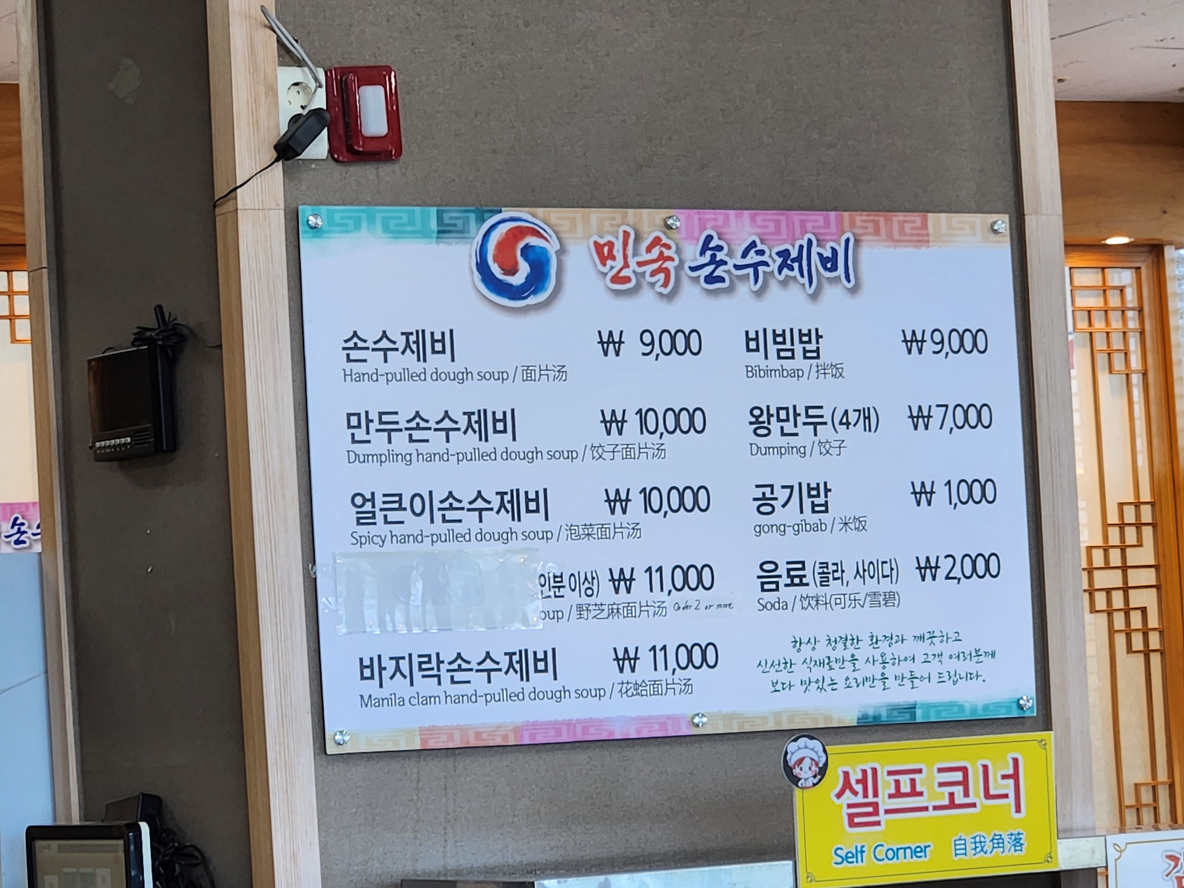 저희 손수제비 2개하고