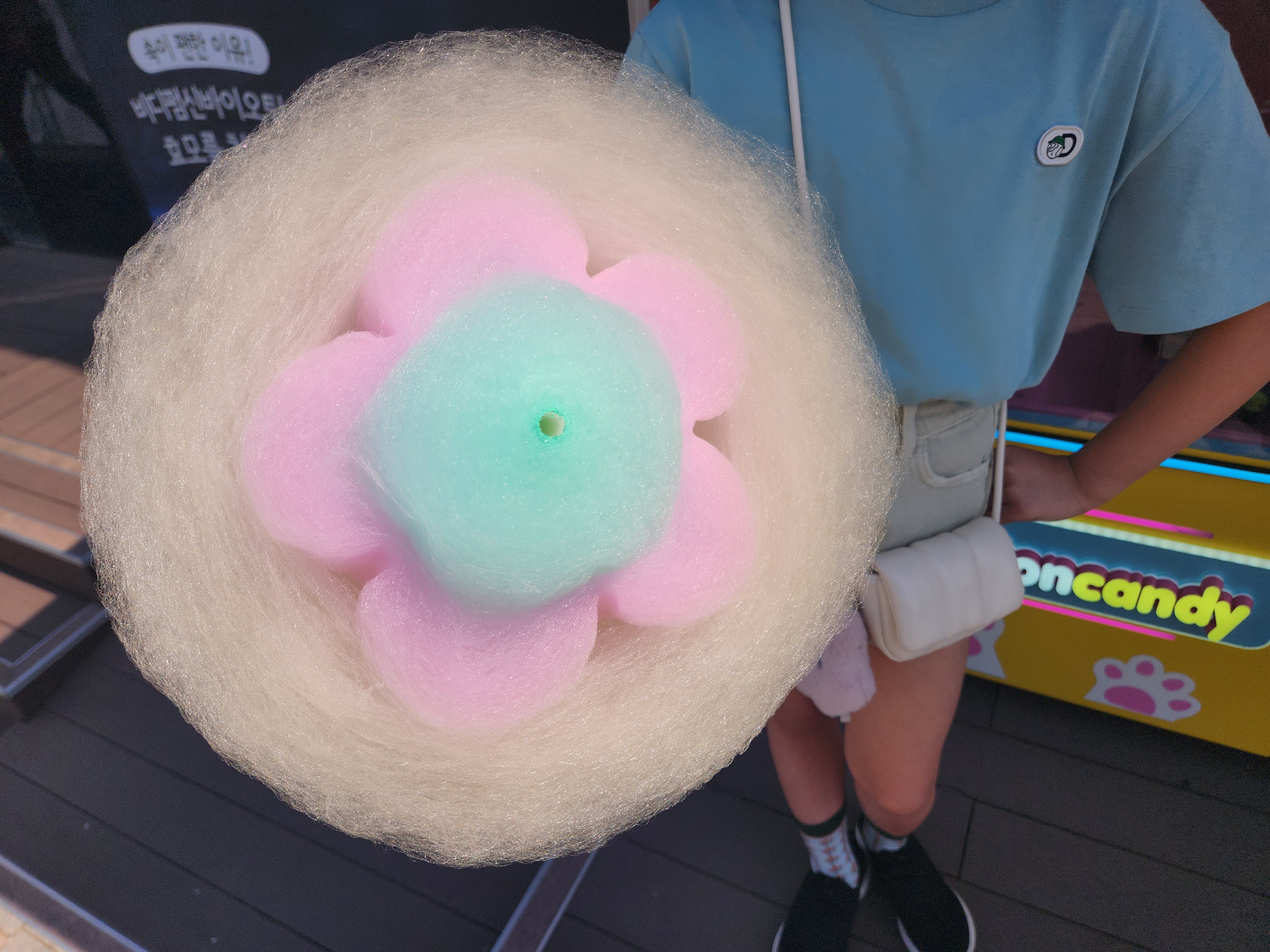 딸아이 솜사탕 먹고 싶다해 하나 해줬는데 이쁜 꽃모양으로 나와 신기하더라고요.