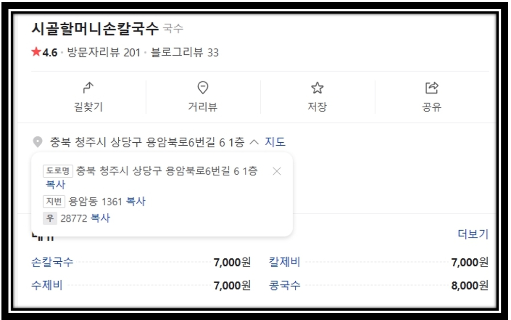 칼국숫집 이름 및 위치는