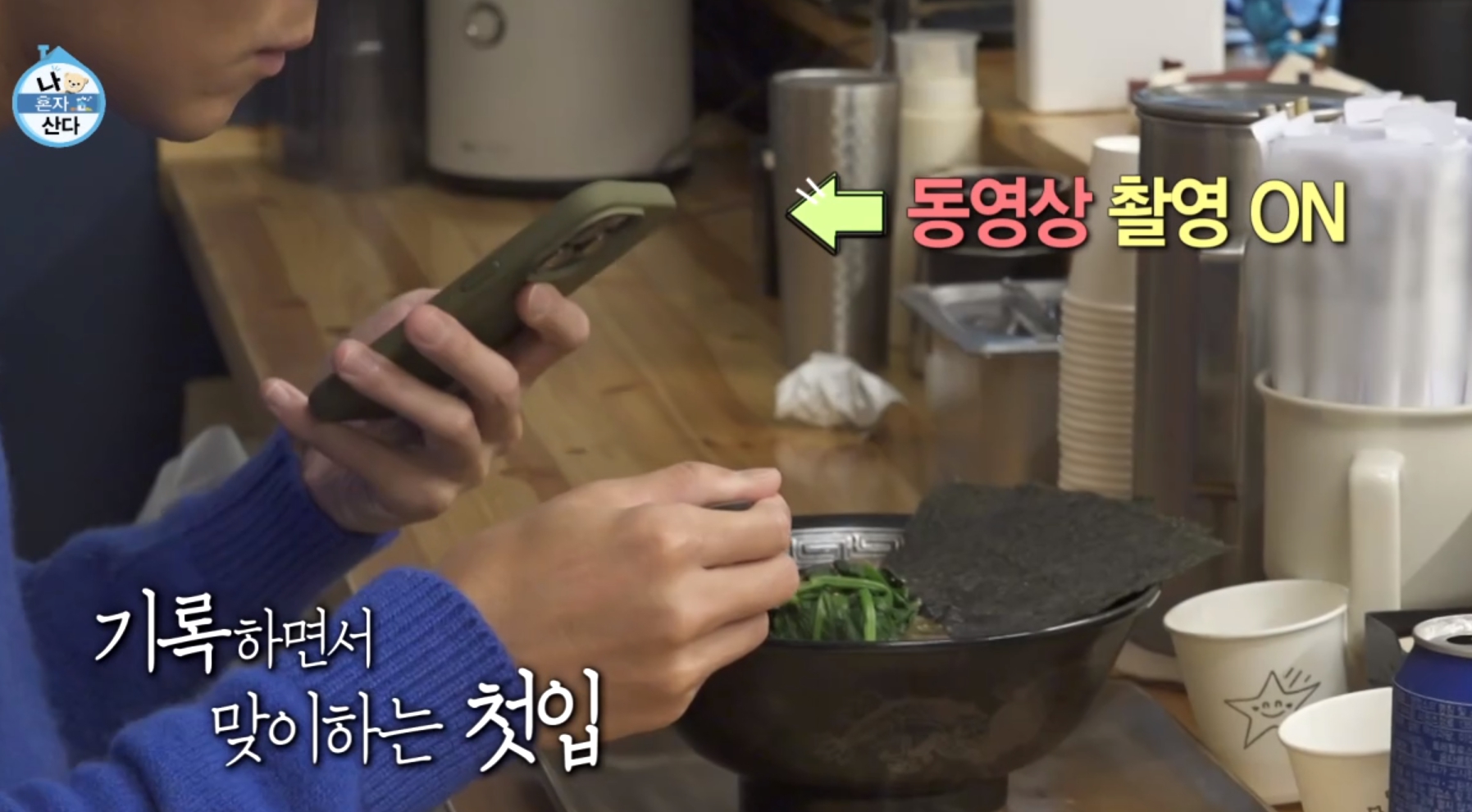 맛있게 라멘 먹는데요.