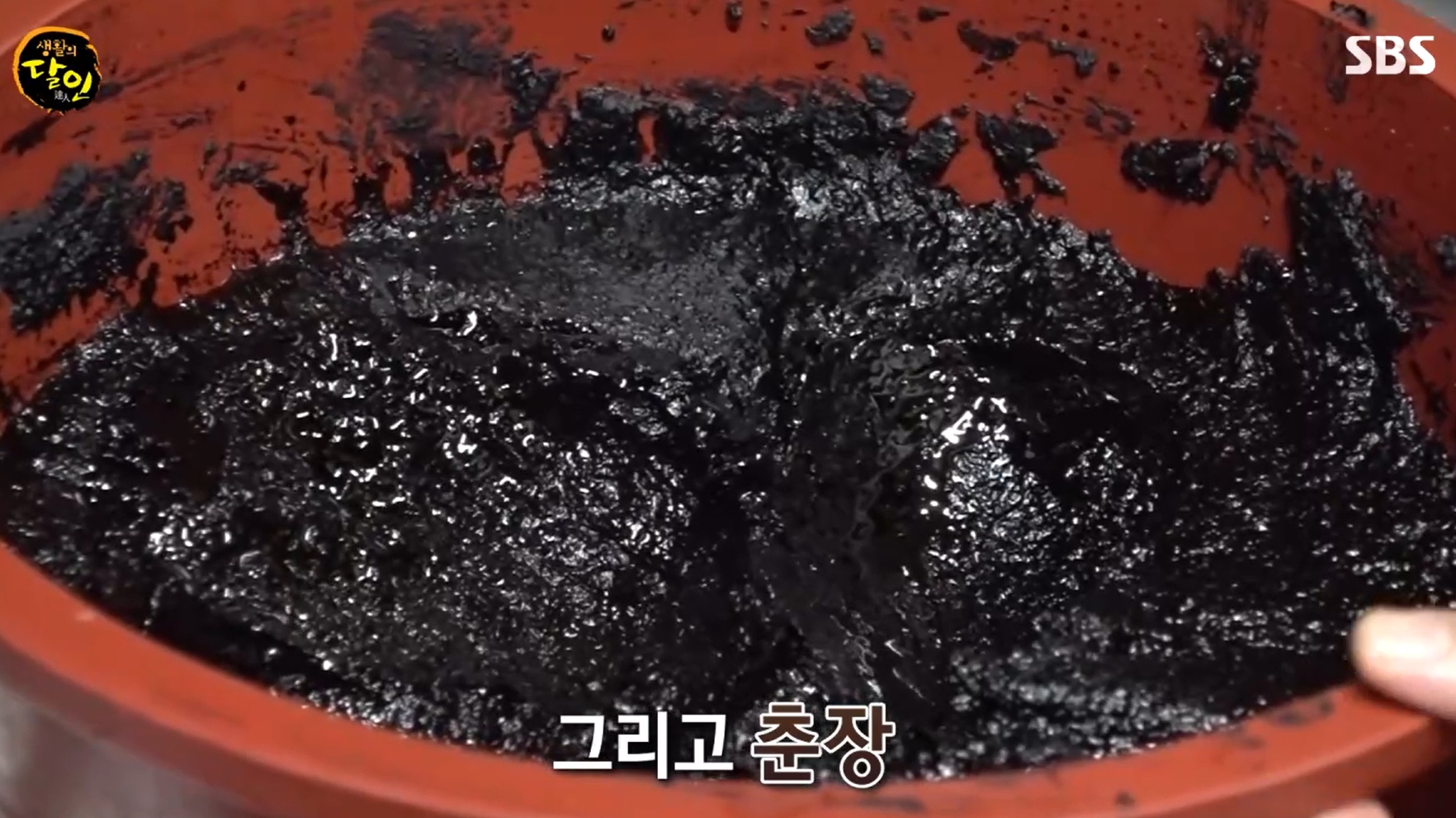 하얀 막 밑으로 검은 춘장 보이는데요.