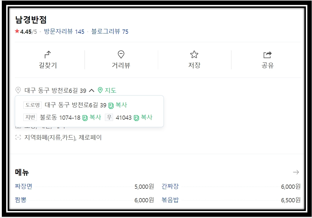 중식당 중국집 이름 및 위치는