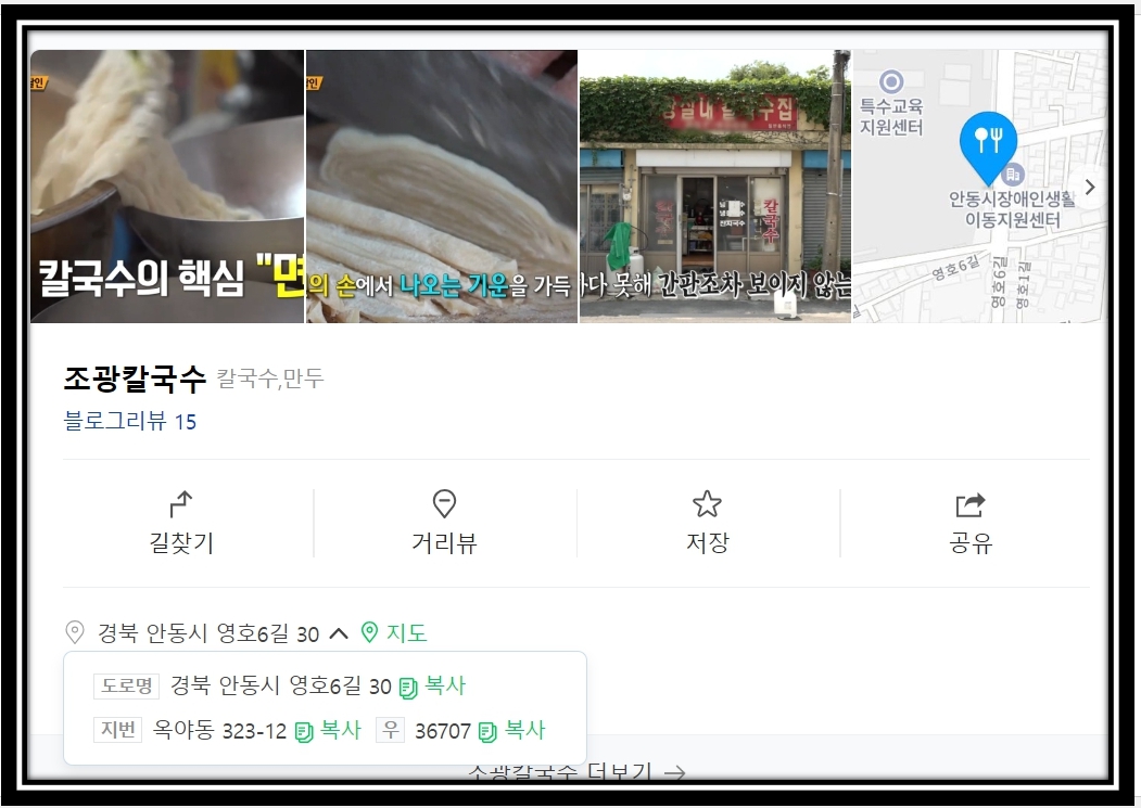 안동 칼국수 달인 식당 이름 및 위치는