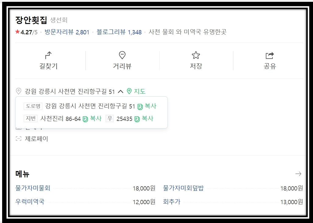가자미물회 우럭미역국 식당 횟집