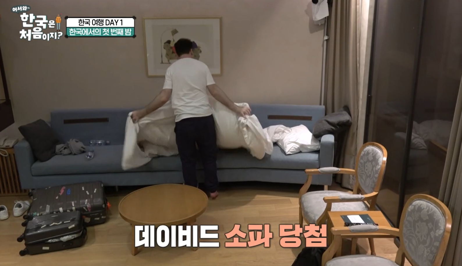 셋째 데이비드 1층 소파에서 자는데요.