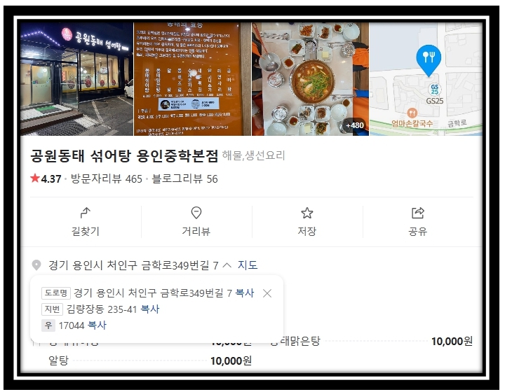 경기 용인 동태탕 식당