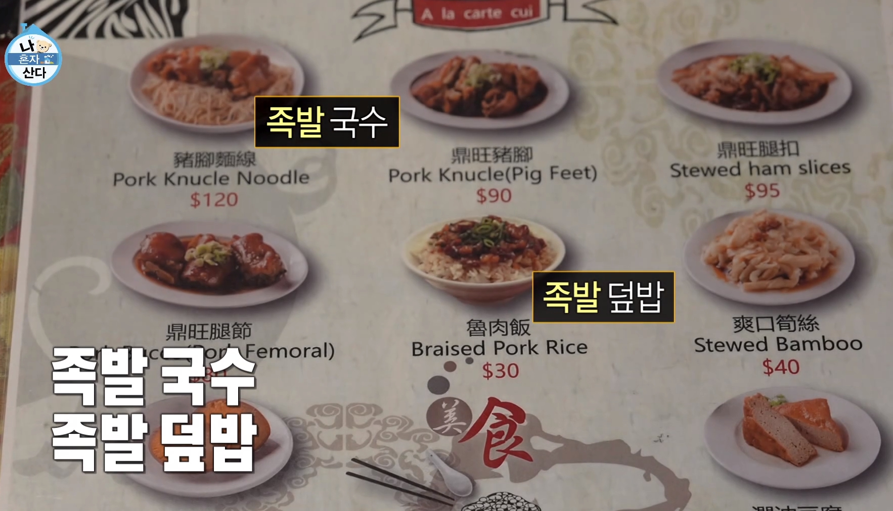 족발 메뉴판 보면서
