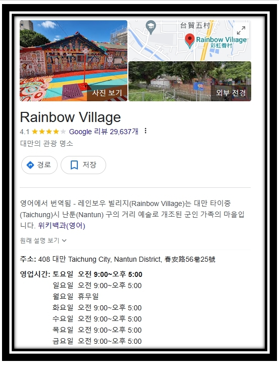이름은 Rainbow Vilage 彩虹眷村 입니다.