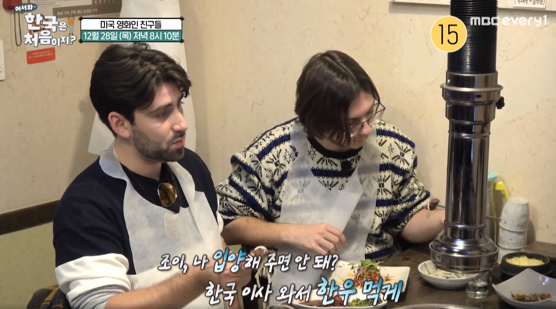한우 먹으면서 크리스와 아드리안