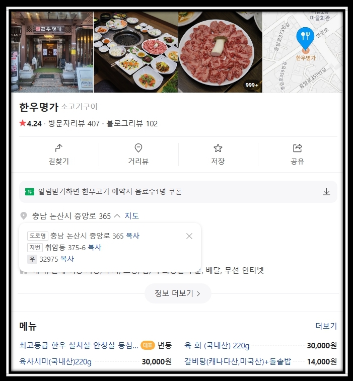 소고기 식당 이름 및 위치는