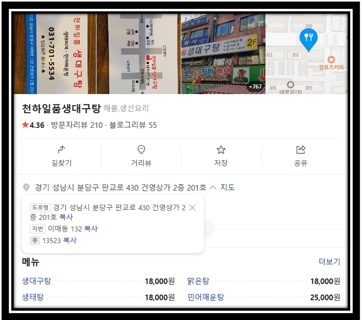 생대구탕 생태탕 민어탕 식당