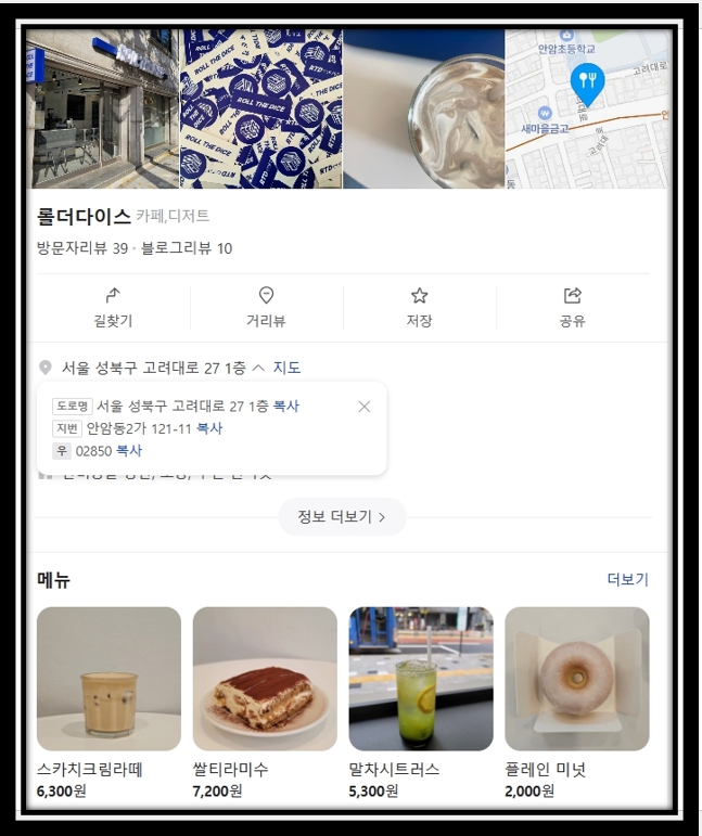 안암동 카페 이름 및 위치는