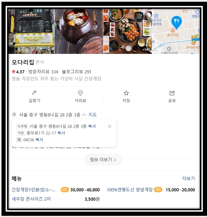 명동 간장게장 식당 이름 및 위치는