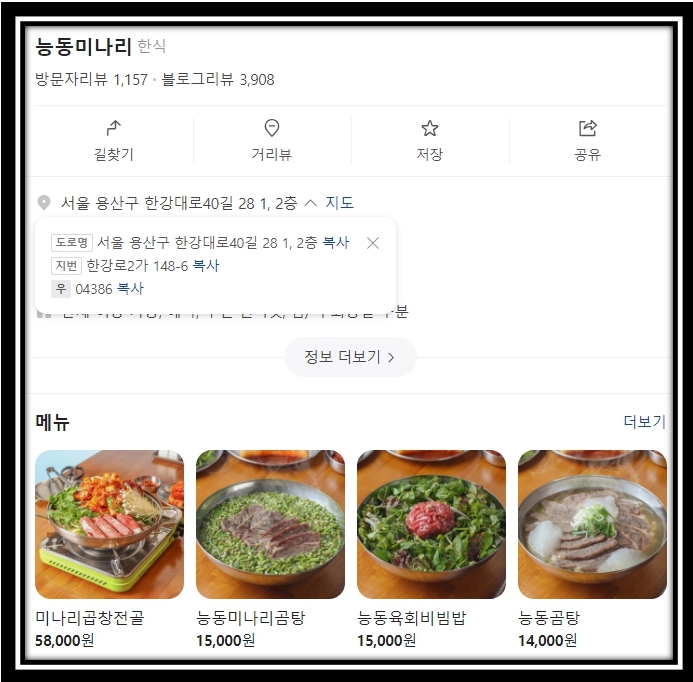 미나리곰탕 식당 이름 및 위치는