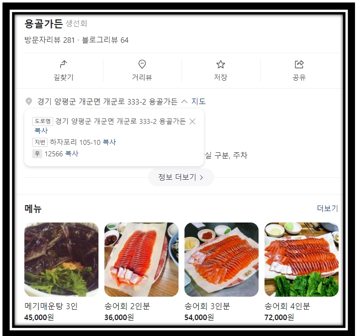 송어횟집 이름 및 위치는