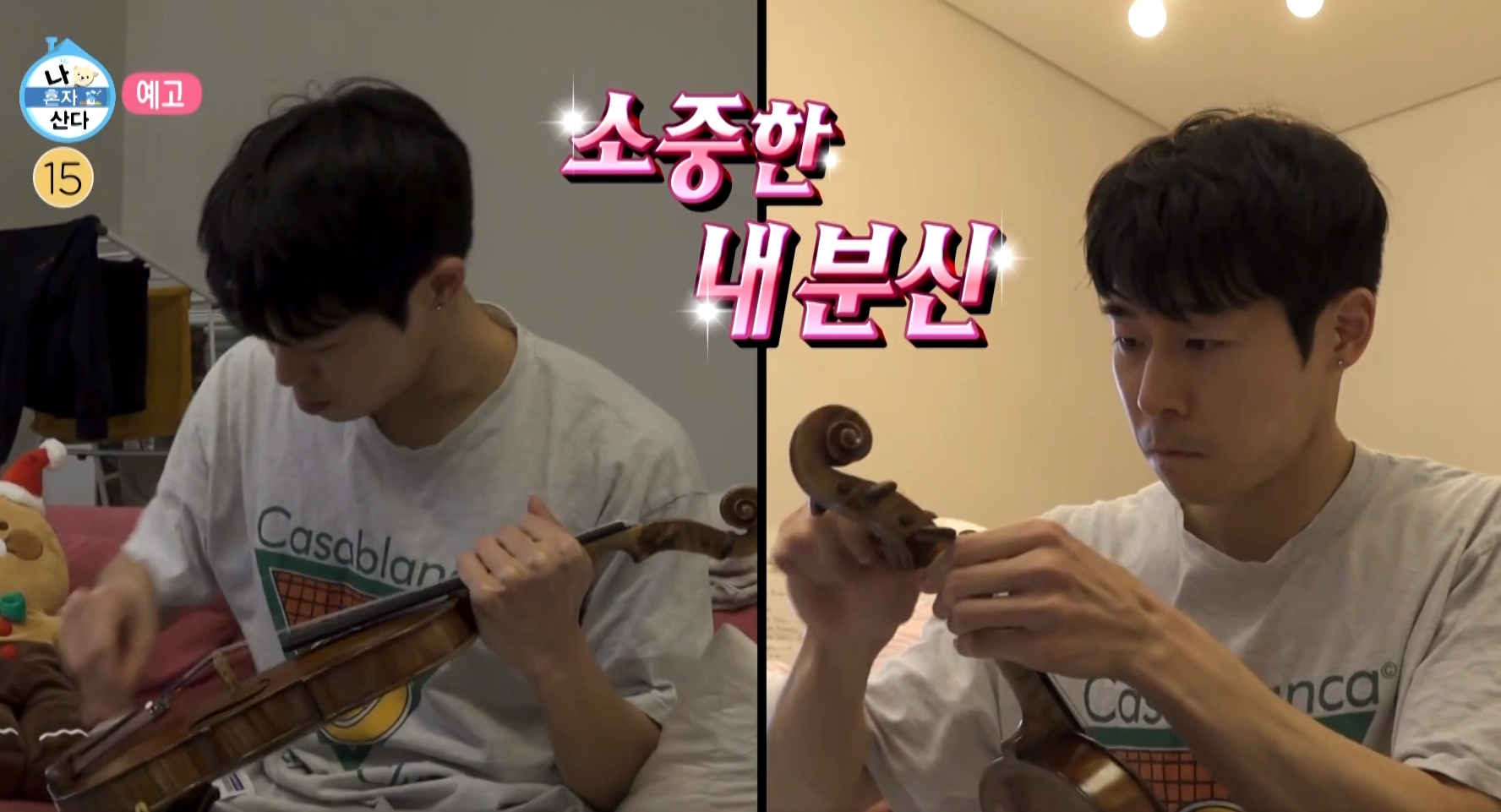 바이올린 꺼내어 연습하는데요.