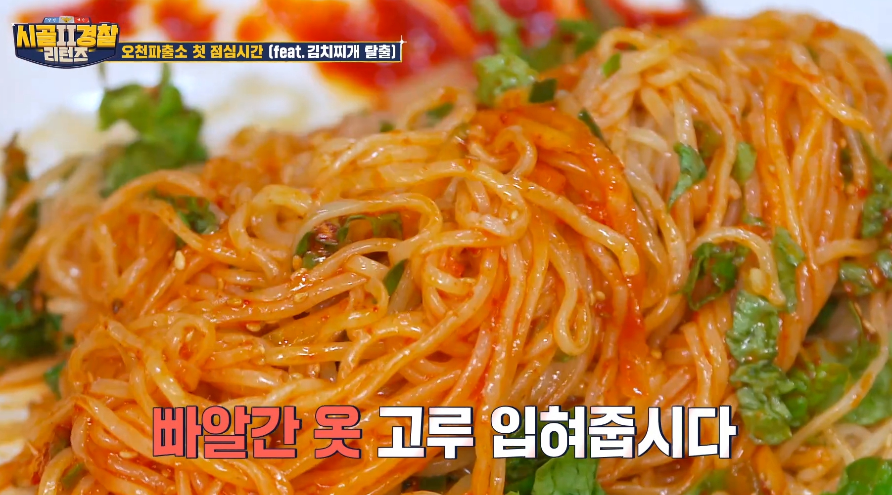 시골경찰분들 김치 맛보고 감탄하는데요.