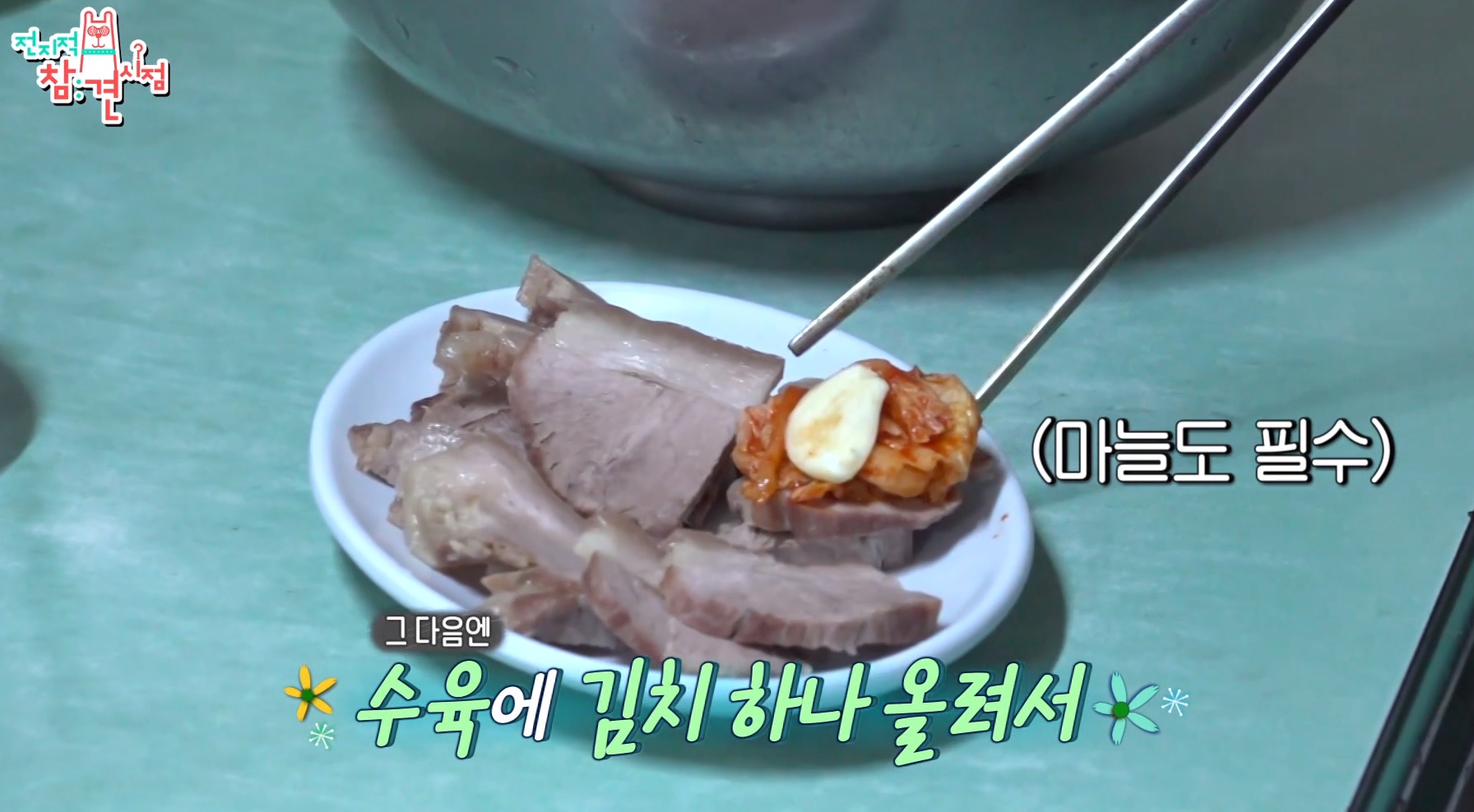 김치와 마늘 올려서 제대로