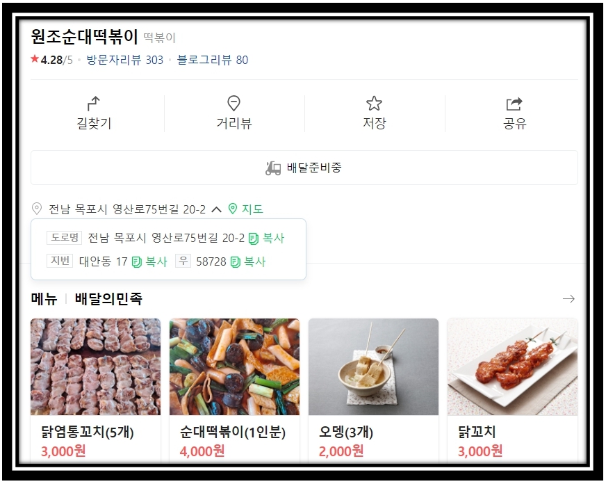 분식집 떡집 이름 및 위치는