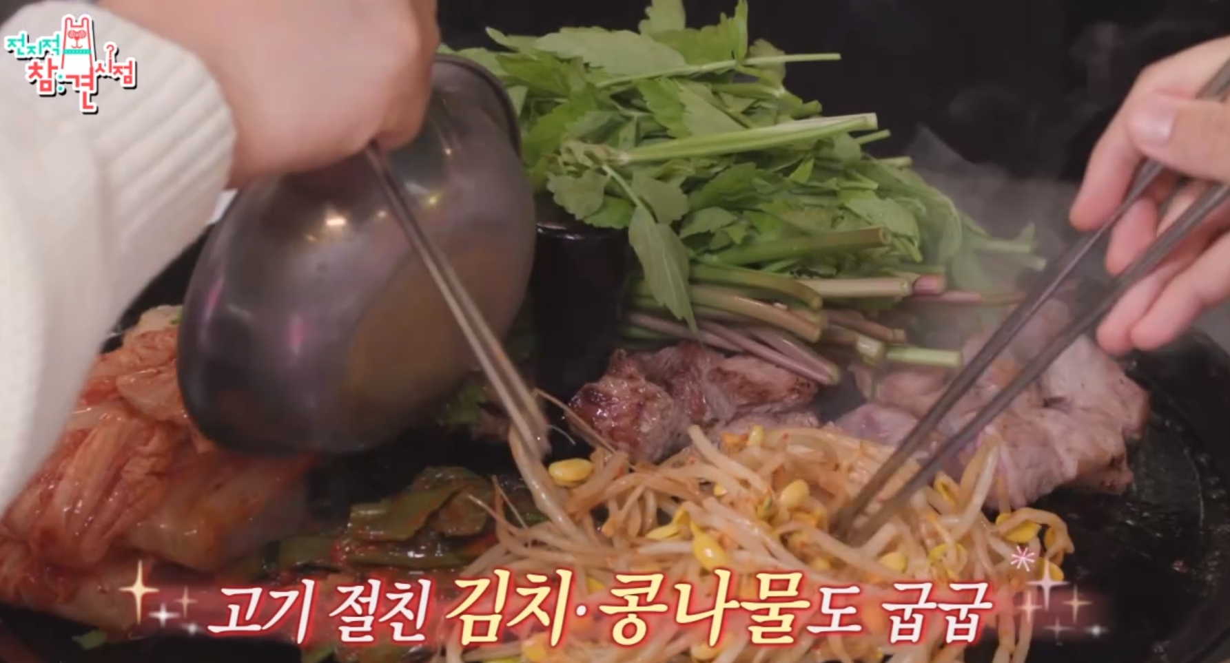 미나리, 김치, 콩나물까지 같이 올려